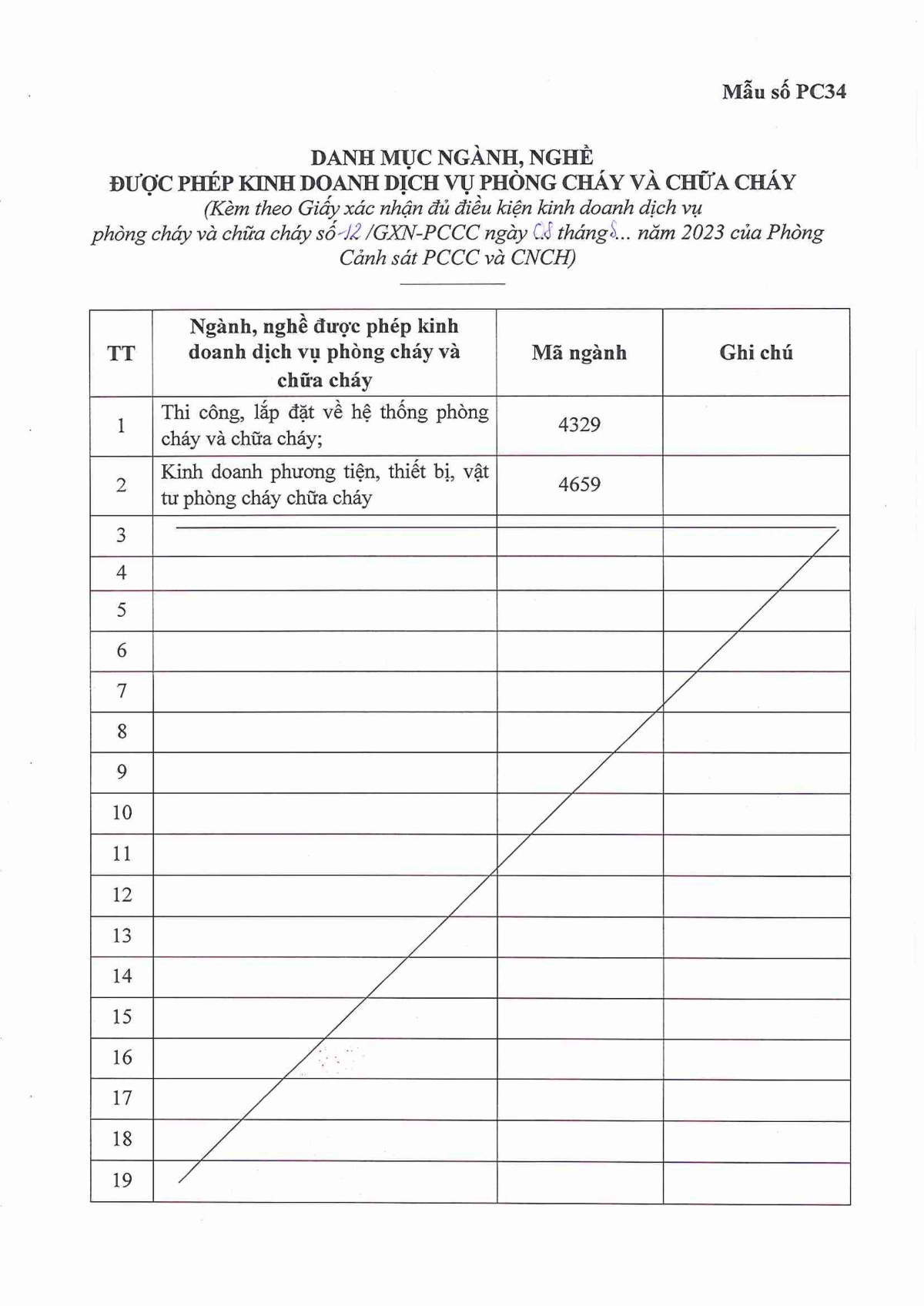 GIẤY XÁC NHẬN ĐỦ ĐIỀU KIỆN KINH DOANH DỊCH VỤ PCCC - CHI NHÁNH AN GIANG