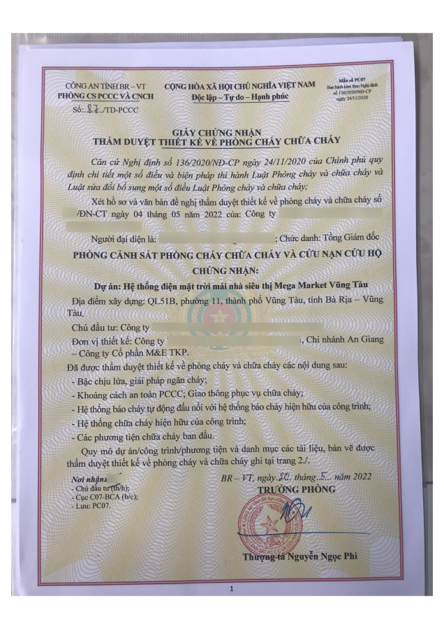 1. Tên công trình: Hệ thống điện mặt trời mái nhà siêu thị Mega Market Vũng Tàu