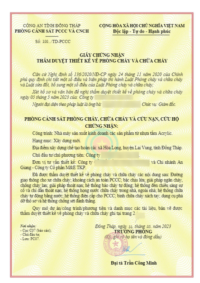 1. Tên công trình: Nhà máy sản xuất kinh doanh các sản phẩm từ nhựa tấm Acrylic