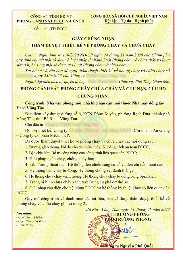1. Công trình: NHÀ VĂN PHÒNG MỚI, NHÀ KHO HẬU CẦN MỚI THUỘC NHÀ MÁY ĐÓNG TÀU VARD VŨNG TÀU